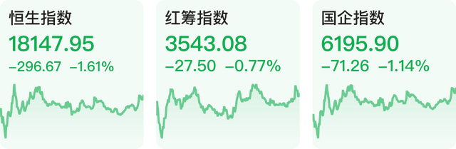 港股三大指数全部下跌。截至收盘,恒生指数跌1.61%,红筹指数跌0.77%,国企指数跌1.14%。恒生科技指数收跌1.7%,医药、汽车板块领跌,小鹏汽车跌近12%,蔚来跌7.8%,理想汽车跌4%;腾盛博药跌4.8%,康希诺生物跌4.3%。