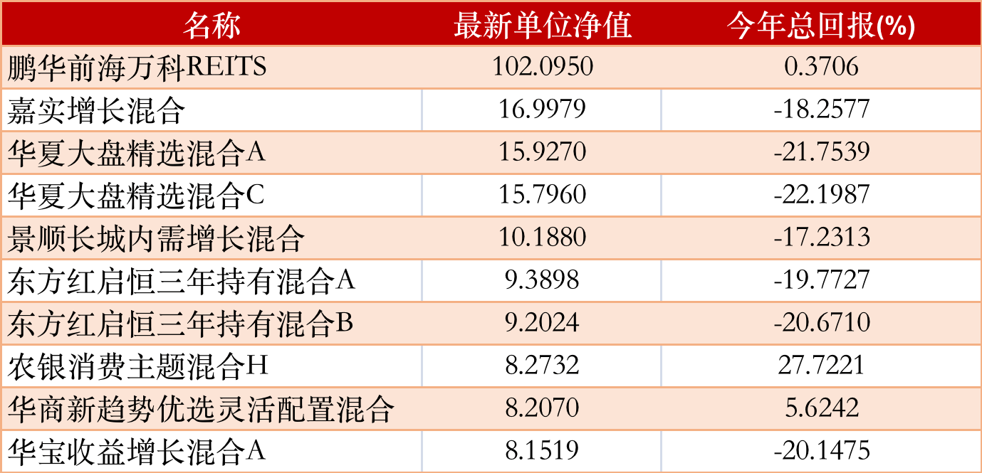 混合型基金上周净值排行