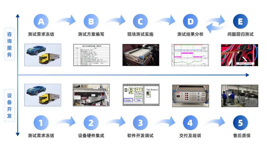 结合多年的整车电气工程经验,经纬恒润可以为主机厂提供“咨询服务 + 设备开发”的一体化解决方案,目前已广泛服务于国内众多车厂客户。