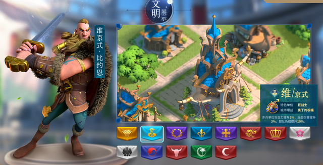 比如维京、西班牙这种冷门的帝国文明的出现,让许多玩家狂喜。多种文明,就意味着玩家有多种建筑风格可供选择。能够在游戏中切换直接的主城风格。不同的文明不光是兵种的不同,不同的英雄间也有着不一样的技能,如致命蜜酒萨尔卡的魅惑技能能造成减速。